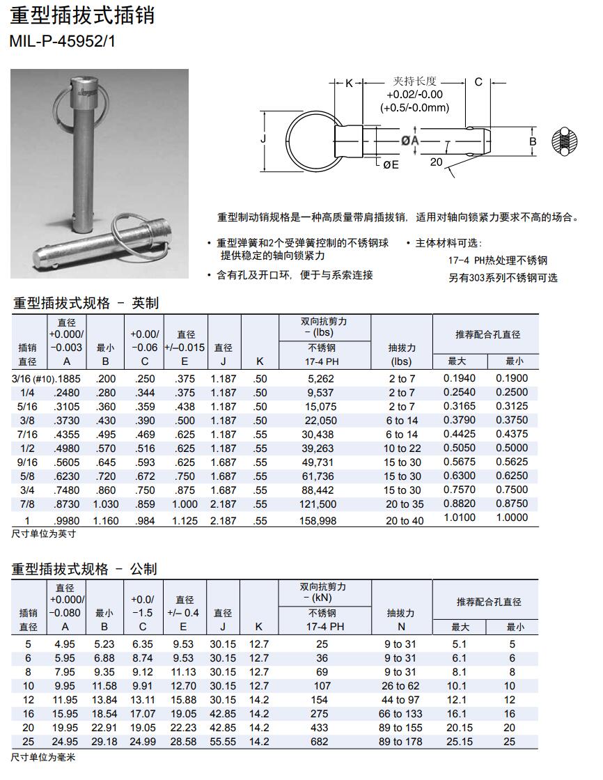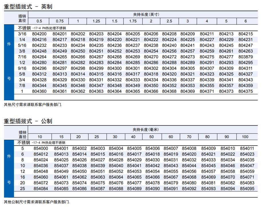 重型插拔式插銷